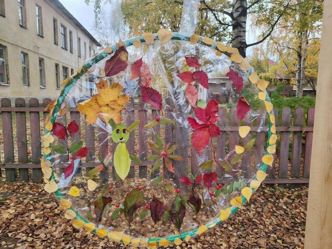 Красота осеннего сезона вдохновила ребят детского сада совместно с воспитателями создать уникальные картины «Краски осени» с помощью техники аппликации на скотче.